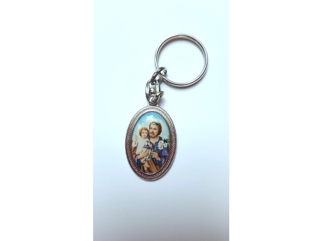 Katechismus katolické církve říká: Svědkové, kteří nás předešli do království, zvláště ti, které církev uznává jako „svaté“, jejich přímluva je nejvyšší službou, jakou prokazují Božímu plánu. Můžeme a máme je prosit, aby se přimlouvali za nás i za celý svět. Kovová klíčenka stříbrné barvy se zdobnějším okrajem vyrobeno v Itálii.