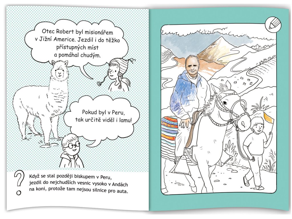 V omalovánkách si mohou děti vybarvit několik životních příběhů Tomáše Špidlíka.