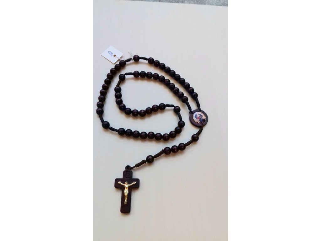 Dřevěný růženec na šňůrce s křížkem bez korpusu.